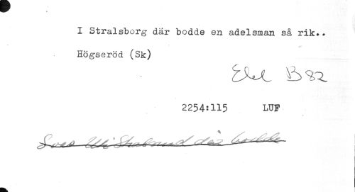 //// I Stralsborg där bodde en adelsman så rik*. //// Högseröd (Sk) //// r, ^ \ ) //// 2254:115 LUF ////