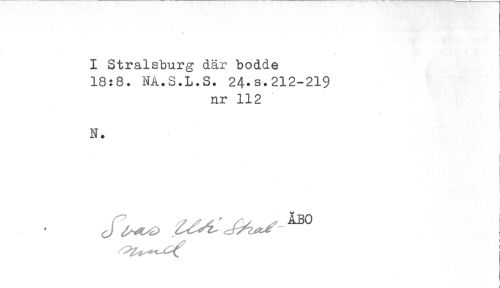 //// I Stralsburg där bodde //// 18:8. NA.S.L.S. 24.s.212-219 //// nr 112 //// N. //// < ////