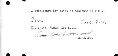 //// - - //// I Stralsburg där bodde en adelsman så rik .. //// Sk //// Allerum ^^ //// E.U.I9334, Visor, III s.141 //// NORD.MUS. ////