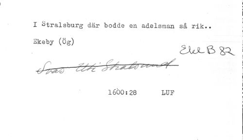 //// t //// i //// I Stralsburg där bodde en adelsman så rik.. //// - t //// Ekeby (Ög) [ //// ] //// i //// 1600:28 LUF ! //// ) //// * //// ! //// K ////