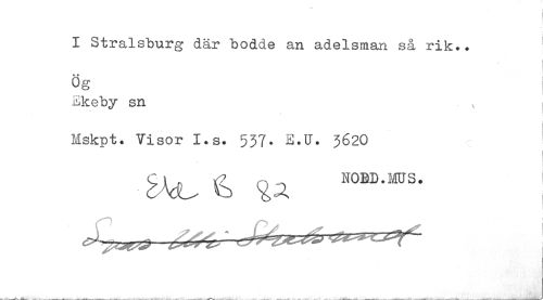 //// I Stralsburg där bodde an adelsman så rik.. //// Ög //// Ekeby sn , //// Mskpt. Visor I.s. 537* E.U. 362O ////
