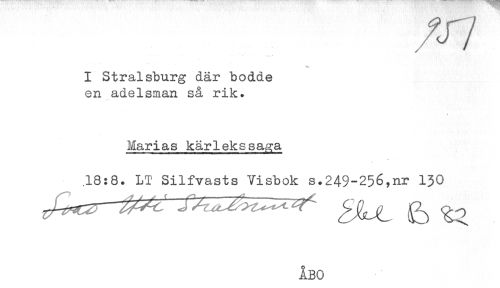 //// A7 //// I Stralsburg där bodde //// en adelsman så rik. //// Marias kärlekssaga //// .18:8. LT Silfvasts Visbok s.249-256,nr 130 //// ÅBO ////
