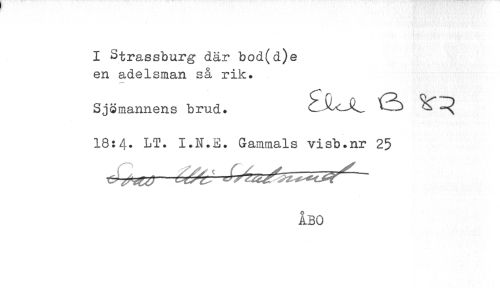 //// I Strassburg där bod(d)e //// en adelsman så rik. //// Sjömannens brud. ^ //// 18:4. LT. I.N.E. Gammals visb.nr 25 //// ÅBO ////