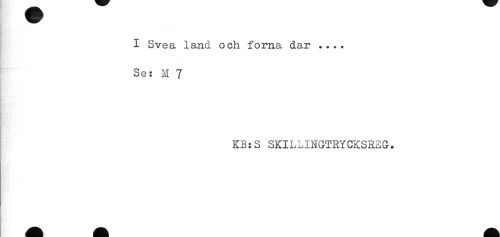 //// I Svea land och forna dar .... //// Se: M 7 //// KB:S SKILLINGTRYCKSREG. ////