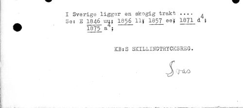 //// I Sverige ligger en skogig trakt .... ^ //// Se: E 1846 uu; I856 11'; 1857 ee; 1871 d ; //// ^ 1875.a ; //// t //// t'' //// 1 //// ii //// ? //// KB:S SKILLINGTRYCKSREG. //// * ////