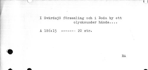//// I Svärdsjö församling och i Boda by ett //// olycksunder hände.... //// A 186:15 20 str. //// K'' //// ^ RÅ //// Hn '.' ' ////