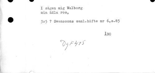 //// I sägen mig Walborg //// : min ädla ros, //// ! //// ^ 3:5 ? Svenssons saml.häfte nr 6,s.83 //// i //// -t //// ! //// h //// j; //// ÅBO //// ! //// L.. ////
