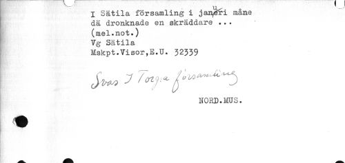 //// I Sätila församling i jaiy^i måne //// dä dronknade en skräddare ... //// (mel.not.) //// Vg Sätila //// Mskpt.Visor,E.U. 32339 //// NORD.MUS. ////