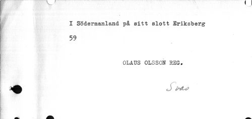 //// L' -Y //// [ ' //// j I Södermanland på sitt slott Eriksberg //// 59 //// OLAUS OLSSON REG, //// k ////