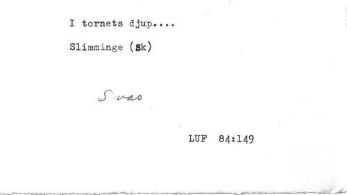 //// - //// I tornets djup.... i //// Slimminge (gk) //// LUF 84:149 ////