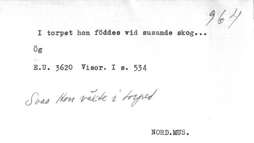 //// I torpet hon föddes vid susande skog... //// * * //// og //// <!- t- //// E.U. 3620 Visor. I s. 534 ////