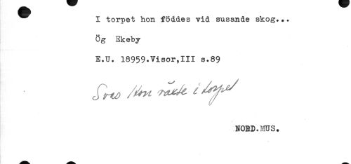 //// ^^ I torpet hon föddes vid susande skog... //// Ög Ekeby //// E.U. 18959.Visor,III s.89 //// ^ //// NOBD.HUS. //// * ////