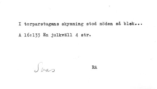 //// t //// I torparstugans skymning stod nöden så blek... //// A 16:133 En julkväll 4 str. //// J ^ ////