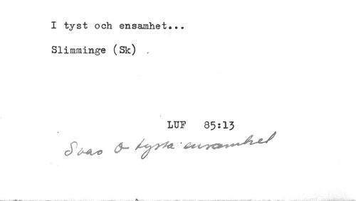 //// I tyst och ensamhet... //// SIimminge (Sk) . //// LUF 85:13 //// ^ /y ^ ^^^^^ ////