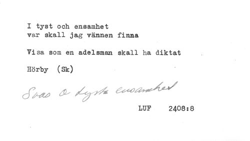 //// I tyst och ensamhet //// var skall jag vännen finna //// Visa som en adelsman skall ha diktat //// Hörby (Sk) //// LUF 2408:8 ////