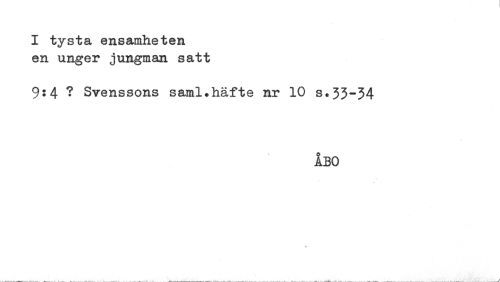 //// I tysta ensamheten //// en unger jungman satt //// 9:4 ? Svenssons saml.häfte nr 10 s.33-34 //// ÅBO ////