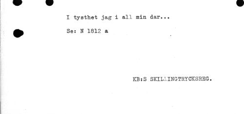 //// I tysthet jag i all min dar... //// : ^ Se: N 1812 a //// < //// ! //// KB:S SKILLINGTRYCKSREG. ////