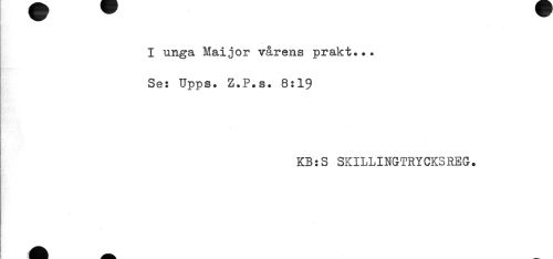//// I unga Maijor vårens prakt... //// Se: Upps. Z.P.s. 8:19 //// KB:S SKILLINGTRYCKSREG. ////