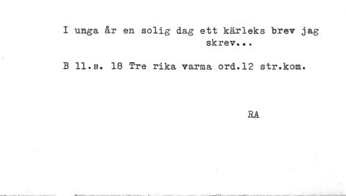 //// I unga år en solig dag ett kärleks brev jag //// skrev... //// B 11.s. 18 Tre rika varma ord.12 str.kom. //// RA ////