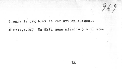 //// I unga år jag blev så kär uti en flicka.. //// i //// B 27:l,s.267 En äkta mans missöde.5 str. kom. //// * //// i ////
