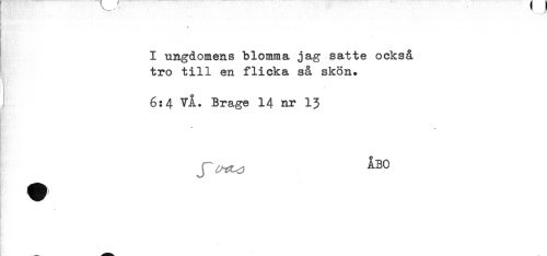 //// t //// I ungdomens blomma jag satte också //// tro till en flicka så skön. //// ! t //// 6:4 VÅ. Brage 14 nr 13 //// K-' //// ^ y //// p ////