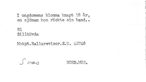 //// I ungdomens blomma knapt 18 år, //// en sjöman hon räckte sin hand.. //// < //// t //// Bl //// Sillhövda //// Mskpt.Rallarevisor.E.U. 42743 //// y NORD .MUS. ////