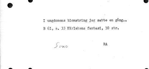 //// < ) //// I ungdomens blomstring jag satte en gång.. //// B 61, s. 33 Kärlekens fantasi, 10 str. //// ! //// r Rå ////