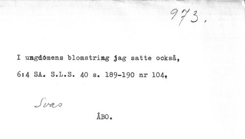 //// I ungdömens blomstring jag satte också, //// 6:4 SA. S.L.S. 40 s. 189-190 nr 104, ////