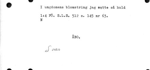 //// ^^ I ungdomens blomstring jag satte så huld //// 1:4 FÖ. S.L.S. 512 s. 145 nr 63. //// N //// ÅBO. ////