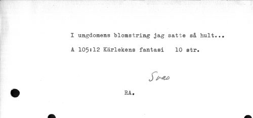 //// I ungdomens blomstring jag satte så hult... //// A 105:12 Kärlekens fantasi 10 str. ////