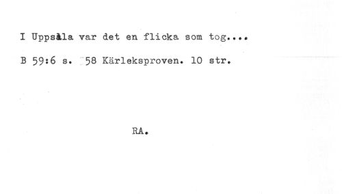 //// I Uppsåla var det en flicka som tog,... //// B 59:6 s. 53 Kärleksproven. 10 str. //// RA. ////