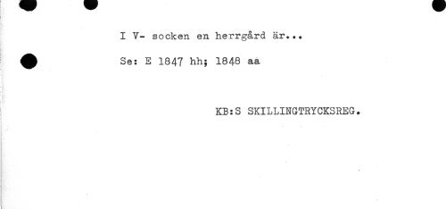//// I V- socken en herrgård är... //// * //// i ^ Se: E 1847 hh; 1848 aa //// ! //// KB:S SKILLINGTRYCKSREG. //// r- ////