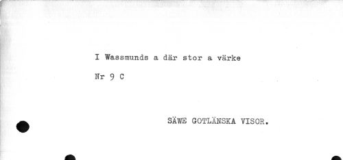 //// i' //// t //// I Wassmunds a där stor a värke //// Nr 9 C //// c* //// ^ SÄWE GOTLÄNSKA VISOR. ////