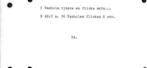 //// I Vaxholm tjänte en flicka skön... //// B 46:2 s. 96 Vaxholms flickan 8 str. //// H^-t-,..**.. //// RA. ////