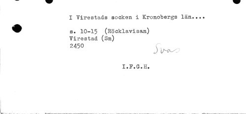 //// I Tirestads socken i Kronobergs län.... //// ^^ s. 10-15 (Röcklavisan) //// Virestad (Sm) //// 2450 //// J //// I. F. G. H. ////