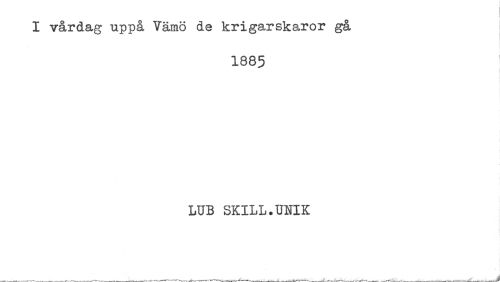 //// I vårdag uppå Vämö de krigarskaror gå //// * //// 1885 //// i //// LUB SKILL.UNIK ////