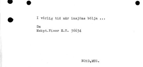 //// ^^ I vårlig tid när insjöns bölja ... //// Sm //// Mskpt.Tisor E.U. 36634 //// NORD,MUS. ////