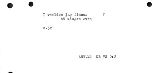 //// I verlden jag finner ? //// så mången ovän //// * //// s.321 //// ARW.H3 KB VS 2:2 ////