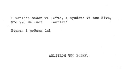 //// I werlden medan vi lefve, i syndene vi oss öfve, //// N?o 228 Mel.not Jemtland //// Stenen i grönan dal //// AKLSTRÖM 300 FOLKV* ////