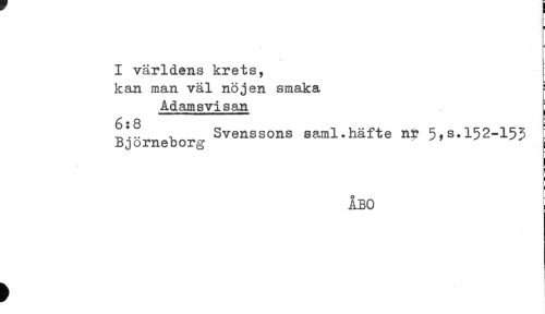 //// I världens krets, //// kan man väl nöjen smaka //// Adamsvisan //// 6:8 //// * . , Svenssons saml.häfte nr 5,s.152-153 //// Bjorneborg //// ÅBO //// t ////