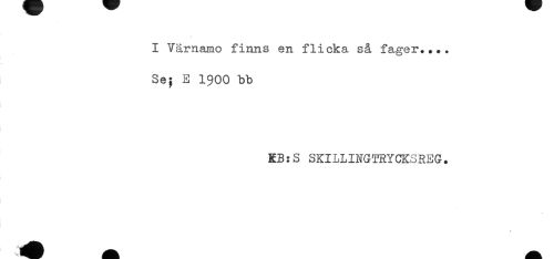 //// I Värnamo finns en flicka så fager.... //// Se; E 1300 bb //// KB:S SKILLINGTRYCKSREG. ////