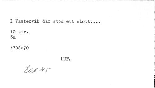 //// I Västervik där stod ett slott.... //// 10 str. //// Sm //// 4786:70 //// LUF. ////