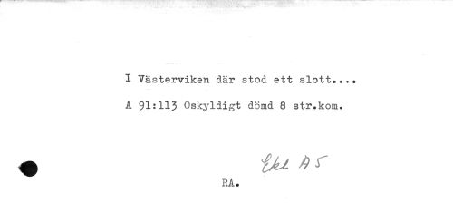 //// I Västerviken där stod ett slott.... //// A 91:H3 Oskyldigt dömd 8 str.kom. //// RA. ////