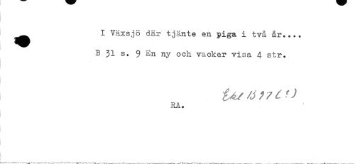 //// ^^ I Växsjö där tjänte en piga i två år.... //// B 31 s. 9 En ny och vacker visa 4 str. //// ^ ; / ^ * //// RA. //// i //// ! ////