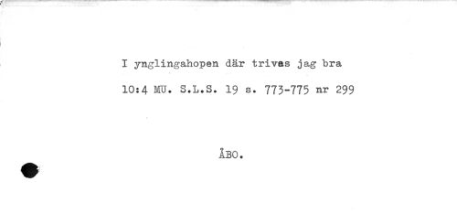 //// i //// I ynglingahopen där trivas jag bra //// 10:4 MU. S.L.S. 19 S. 773-775 nr 299 //// ÅBO. ////
