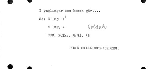 //// I ynglingar som hemma går.... //// Se: E 1830 I**" //// N 1815 a //// UUB. Fotkv. 3:34, 38 //// KB:S SKILLINGTRYCKSREG. ////