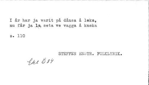 //// I år har ja varit på dånsa å leka, //// nu får ja la seta ve vagga å kneka //// s. 110 //// STEFFEN ENSTR. FOLKLYRIK. ////