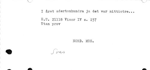 //// I året adertonhundra ja det var nittiotre... //// E.U. 21118 Visor IV s. 237 //// Utan prov //// NORD. ms. ////