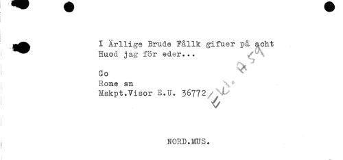 //// ^^^ I Ärllige Brude Fållk gifuer på acht //// ^^ Huod jag för eder... //// Go //// Rone sn //// Mskpt.Visor E.U. 36772 L //// ' V //// NORD.MUS. ////