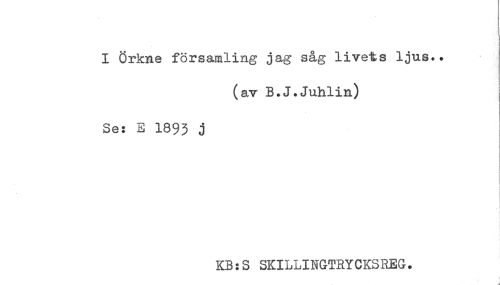 //// I Orkne församling jag såg livets ljus.. //// (av B.J.Juhlin) //// Se: E 1893 3 //// KB:S SKILLINGTRYCKSREG. ////